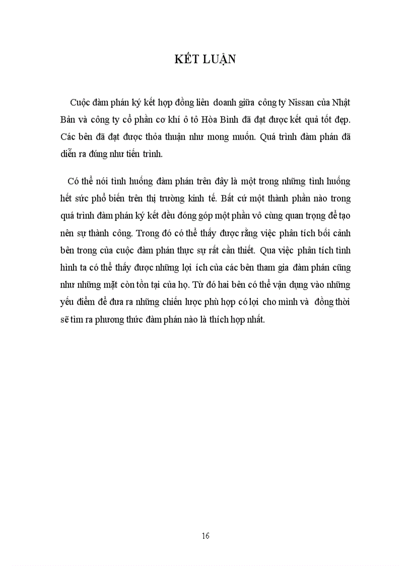 Tiểu Luận Mon đam Phan đam Phan Ky Kết Hợp đồng Lien Doanh Giữa Cong Ty Cổ Phần Cơ Khi O To Hoa Binh Va Cong Ty Nissan Của Nhật Bản